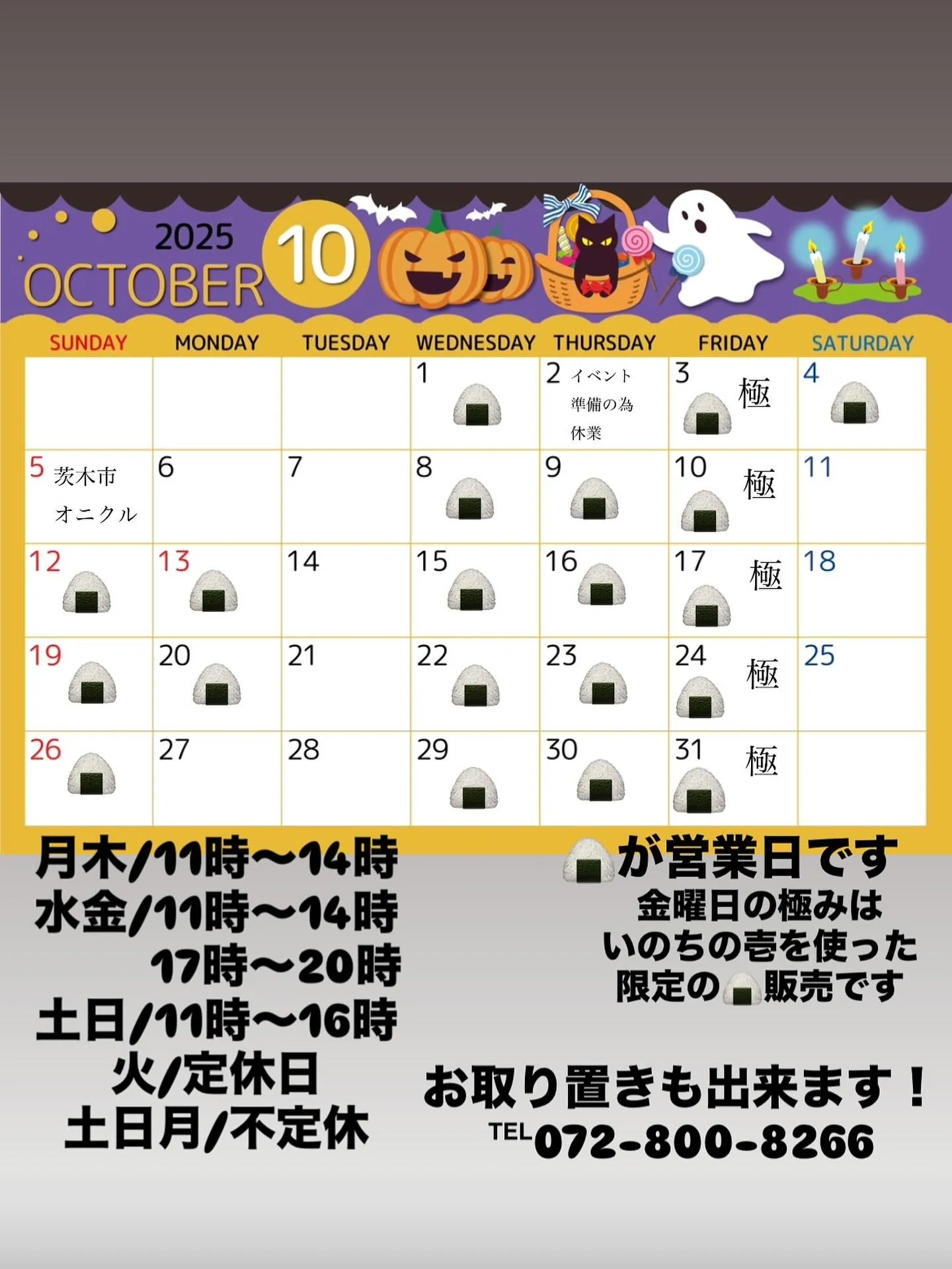 10月のカレンダーです! 宜しくお願いします